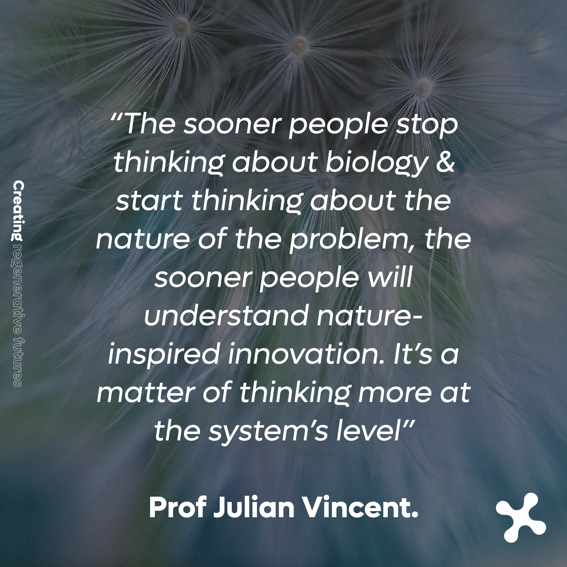 “The sooner people stop thinking about biology & start thinking about the nature of the problem, the sooner people will understand nature-inspired innovation. It’s a matter of thinking more at the system’s level.” Prof Julian Vincent.